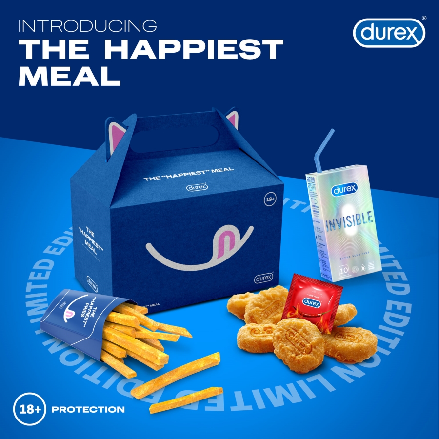 Durex, Singapur’da bir 1 Nisan Şaka Günü için kampanya hazırladı. “En Mutlu Yemek” nugget’lar, patates kızartması ve prezervatif formatında ekstra “koruma” sunuyor.
