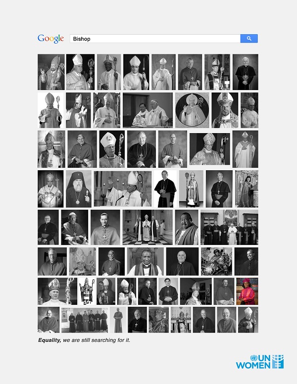 UN Women‘ın kampanyasında, Google‘daki “piskopos”, “CEO” ve “general” görsel arama sonuçlarında dikkat çekici bir durum gözler önüne seriliyor.