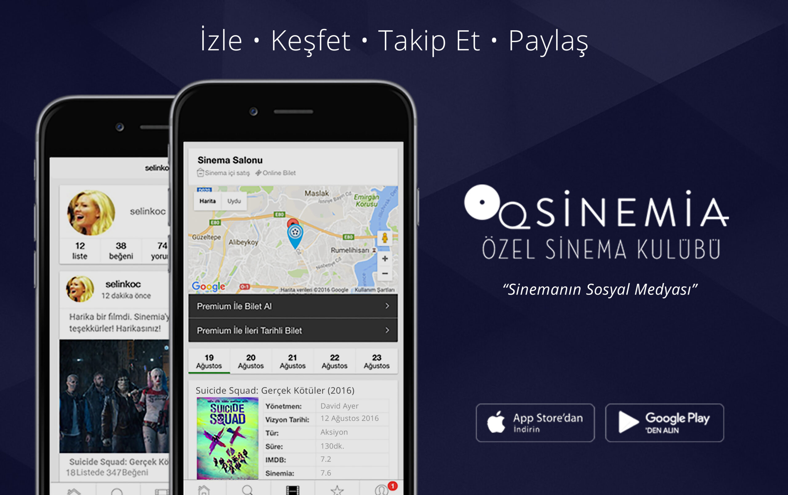 Sinemia uygulaması, Google Play ve Apple Store üzerinden veya www.sinemia.com/get-app adresinden indirilebiliyor.