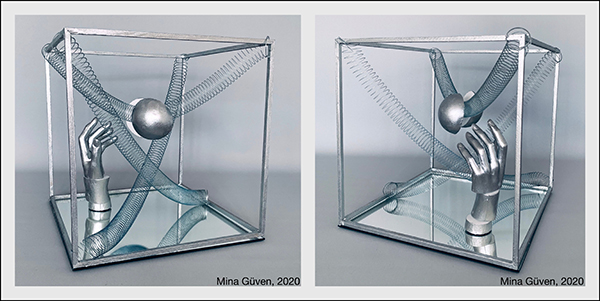 Bu çalışmamda pandemi sürecinde “kafes içinde yaşama” hissini yansıtmak istedim. Sadece fiziksel olarak değil, fikir ve duygu iletişiminin az olduğu bir sürecin beni nasıl etkilediğini, düşüncelerimi nasıl değiştirdiğini ve hedeflerime ulaşma çabasını nasıl etkilediğini betimliyor.
