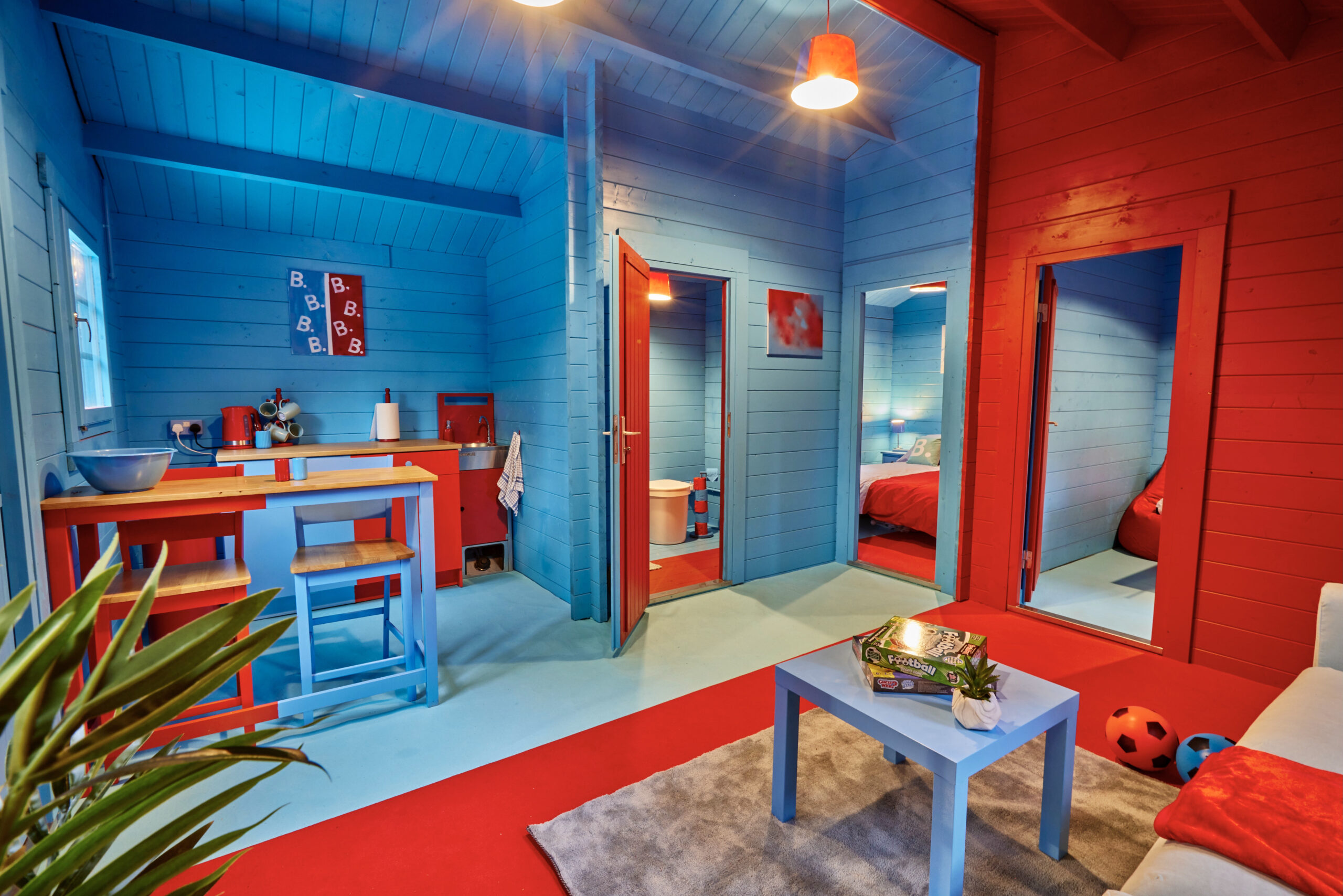 İki farklı yarıya sahip ev, Manchester’ın iki futbol stadı arasında, onlara eşit uzaklıkta, First Street’te konumlanmıştı. Futbol taraftarları, 12 Ocak Perşembe günü “önce gelen alır” esasına göre odada bir gecelik konaklama için rezervasyon hakkına sahipti.