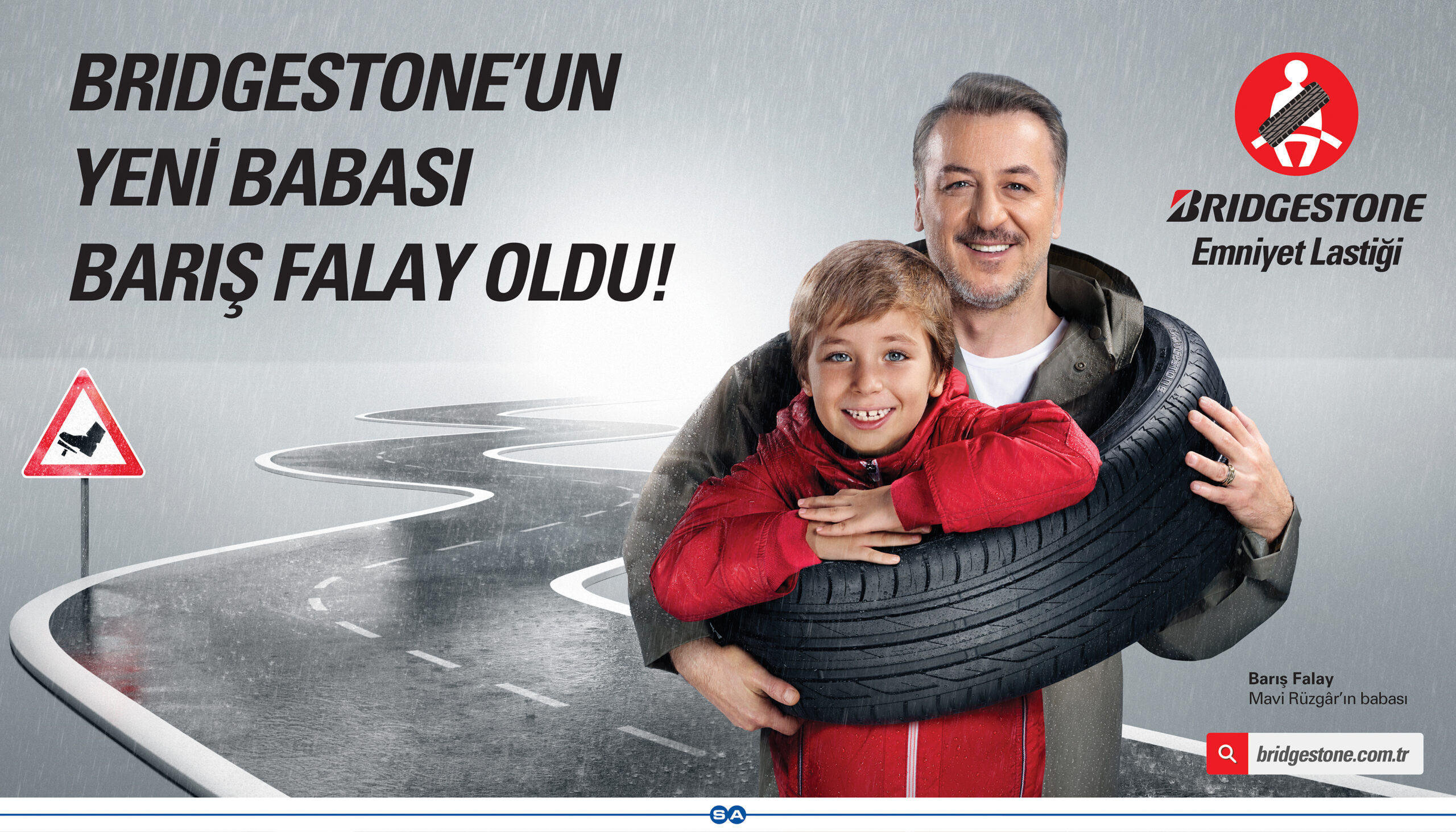 Türkiye’de Brisa tarafından üretilen ve pazara sunulan Bridgestone, “Emniyet Lastiği” kampanyasıyla ailesinin emniyeti için her şeyi göze alan babaları konu almaya devam ediyor. Marka, yeni reklam yüzü olarak oyuncu Barış Falay’la anlaştı. Televizyon için hazırlanan reklam filmi çekimlerinde Falay, 7 yaşındaki oğlu Mavi Rüzgar Falay ile birlikte kamera karşısına geçti.