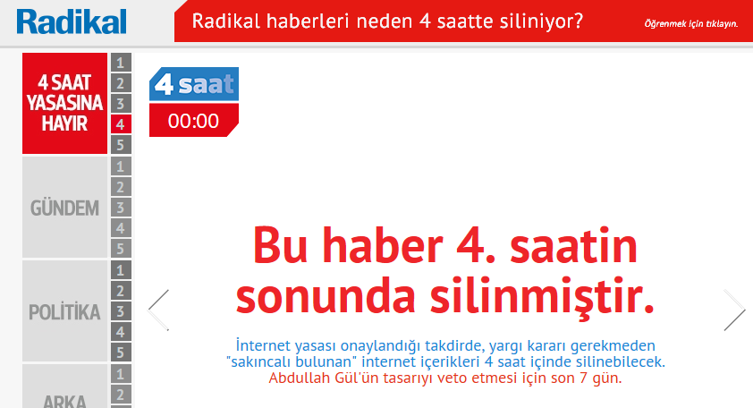 Radikal Gazetesi için yapılan #4saat kampanyasıyla TBWA\İstanbul 2 kategoride 2 Altın Aslan kazandı. İnternet düzenlemesine ilişkin yasanın gündeme gelmesiyle hayata geçirilen kampanyada internet sitesindeki haberler dördüncü saatte silinmeye başlıyordu.
