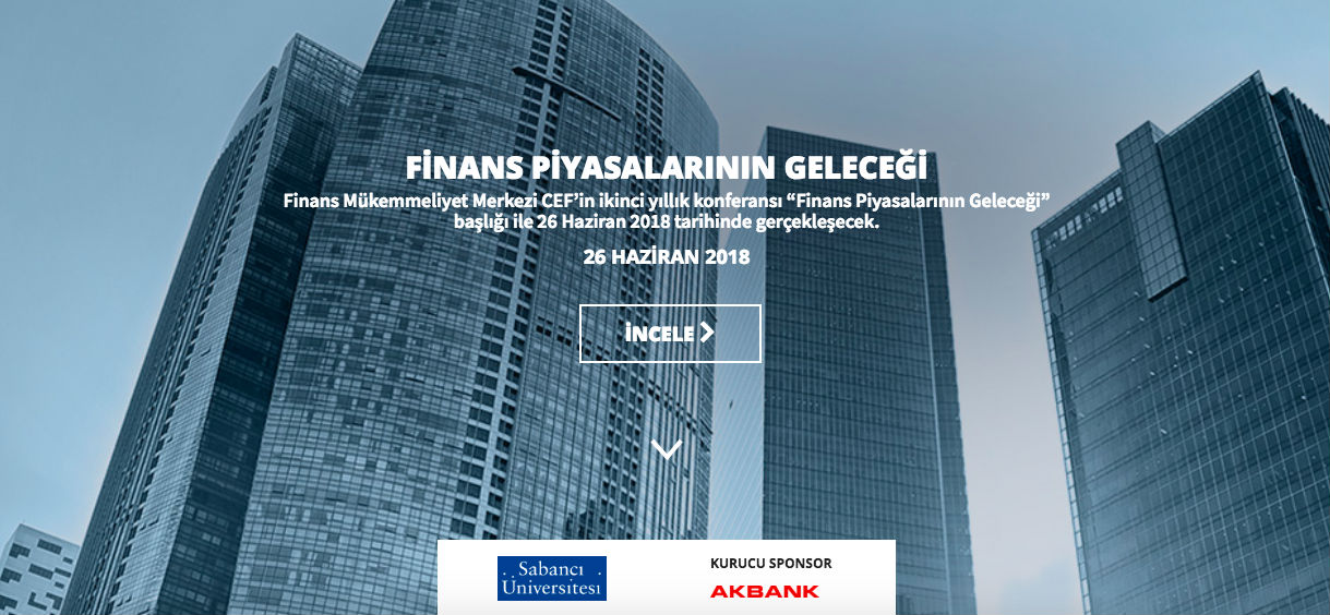 26 Haziran 2018 Salı günü CEF (Center of Excellence in Finance), finans dünyasının en iyilerine ev sahipliği yapacak. Sabancı Üniversitesi dahilinde, Akbank‘ın kurucu sponsorluğuyla hayata geçirilen CEF, finans dünyasının geleceğine ışık tutacak.