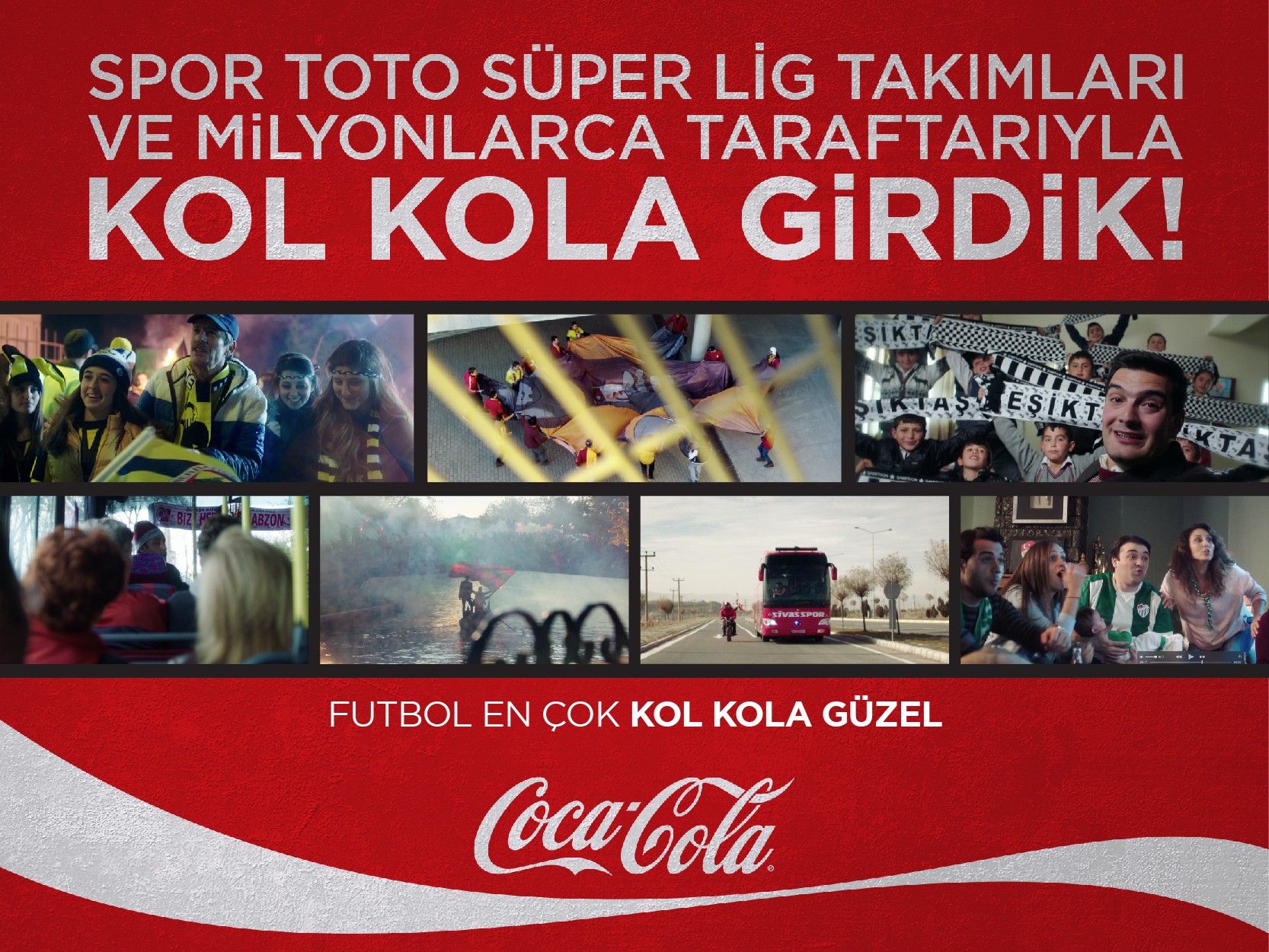 Şimdiye kadar Türkiye Milli Futbol Takımı ile Coca-Cola Gelişim Liglerinin ana sponsorları arasında bulunan Coca-Cola, Spor Toto Süper Lig takımlarının da sponsoru olarak futbola destek vermeyi sürdürdüğünü yeni reklam filmiyle duyurdu. Coca-Cola, takımlarını yürekten destekleyen milyonlarca taraftara seslenen “Kol Kola” kampanyası ile taraftarlarla kol kola girdi.