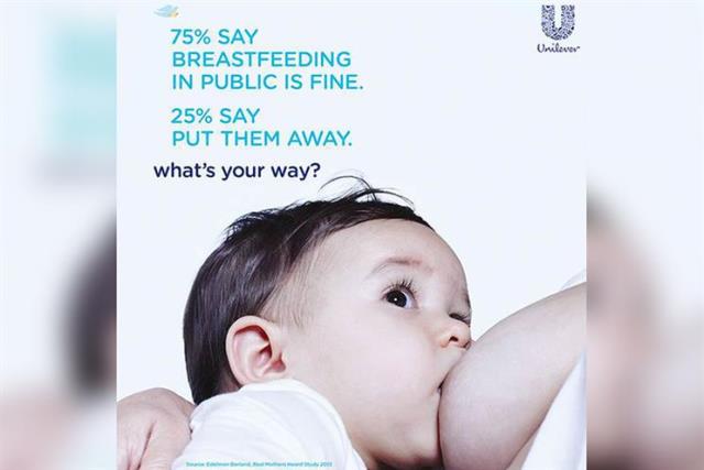 Unilever, halka açık yerlerde emzirmeye karşı olanları desteklemekle suçlanan ve tartışma yaratan Baby Dove reklamlarını geri çekiyor.