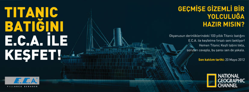 “E.C.A. ile Keşfet” kampanyasının ilk ayağı olan “Titanic’i Keşfet”, 13 Nisan Cuma günü sitesinde başladı. 13 Nisan – 20 Mayıs 2012 tarihleri arasında, ecailekesfet.com adlı sitede yer alan sorulara doğru yanıt verenler arasında yapılacak çekiliş ile bir kişi, Ağustos ayında, 36 farklı ülkeden gelen macera tutkunuyla Kanada’nın St. Johns eyaletinden kalkacak ve yaklaşık 15 gün sürecek uzun bir gemi yolculuğu ile Titanic Batığı’na ulaşacak olan ve uzmanların eşliğinde özel bir deniz altı ile batığa inecek.