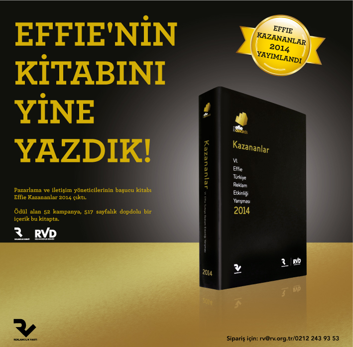 Reklamcılar Derneği ve Reklamverenler Derneği tarafından organize edilen Effie Türkiye Reklam Etkinliği’nin en son kitabı satışa çıktı. Profesyoneller, akademisyenler ve reklamcılar için bir arşiv niteliği taşıyan Effie Türkiye 2014, Reklamcılık Vakfı’ndan sipariş edilebilir.
