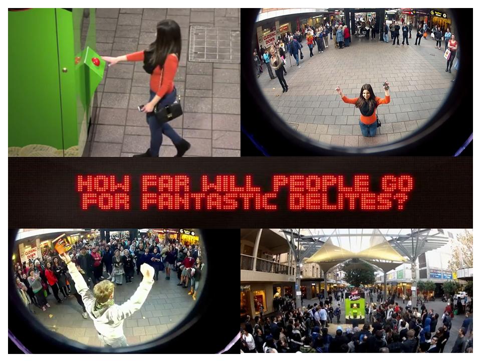 İnsanlar, Fantastic Delites için ne kadar ileri gidecekler? Avustralyalı aperatif yiyecek markası Fantastic Delites, bu sorunun cevabını öğrenmek için bir makine inşa etti ve makineyi halka açık yerlere konumlandırdı. Makine, insanlara Fantastic Delites’a ulaşmaları için birtakım direktifler veriyor. İnsanlar ise yiyeceğe ulaşmak için direktifleri gerçekleştirmeye çalışıyor.