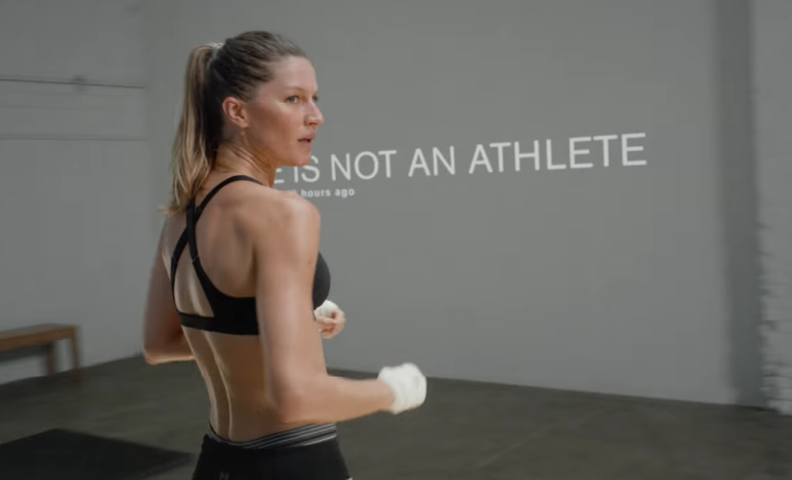 Under Armour’un Droga5 ajansı tarafından yaratılan “I Will What I Want” kampanyasının yeni reklamında Gisele Bündchen’in, arkasındaki duvarlara hakkında yapılan yorumlar yansırken, bir kum torbasına vurmasını izliyoruz.