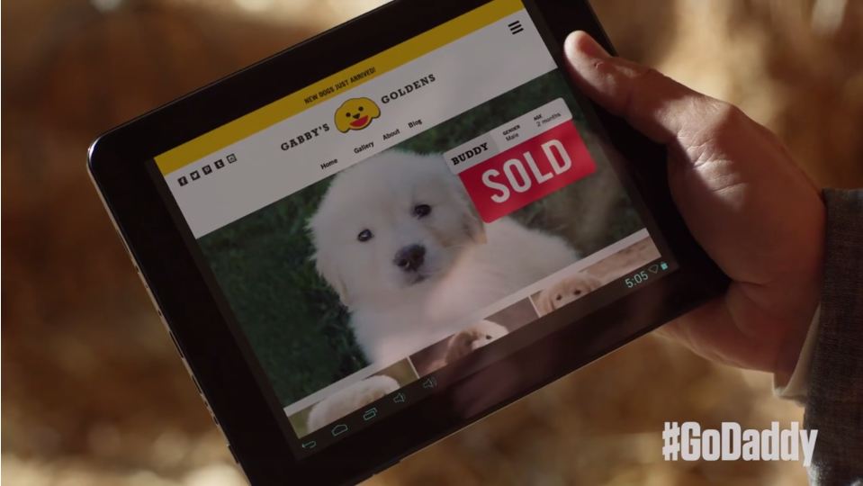 Reklamda, yavru bir Golden Retriever cinsi köpek,satıldığı kişiye teslim edilmek üzere bir kamyonetin arkasında giderken kamyondan düşüyor. Buddy isimli bu köpek, evini bulmak için uzun yollar katediyor ve nihayet evine vardığında bu kez, sahibinin GoDaddy aracılığıyla oluşturduğu “Gabby’s Goldens” websitesi üzerinden satıldığı yere doğru gitmek üzere yola koyuluyor.