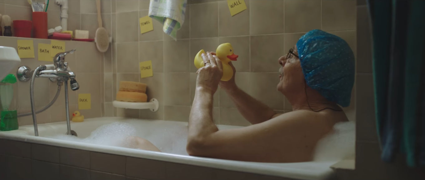Büyük bir kararlılıkla yabancı dili öğrenmeye çalışan yaşlı adam, kelime ezberlemek için evinin her yerine post-it yapıştırıyor, otobüste konuşma alıştırmaları yapıyor ve en sonunda İngilizce konuşmayı başarıyor.