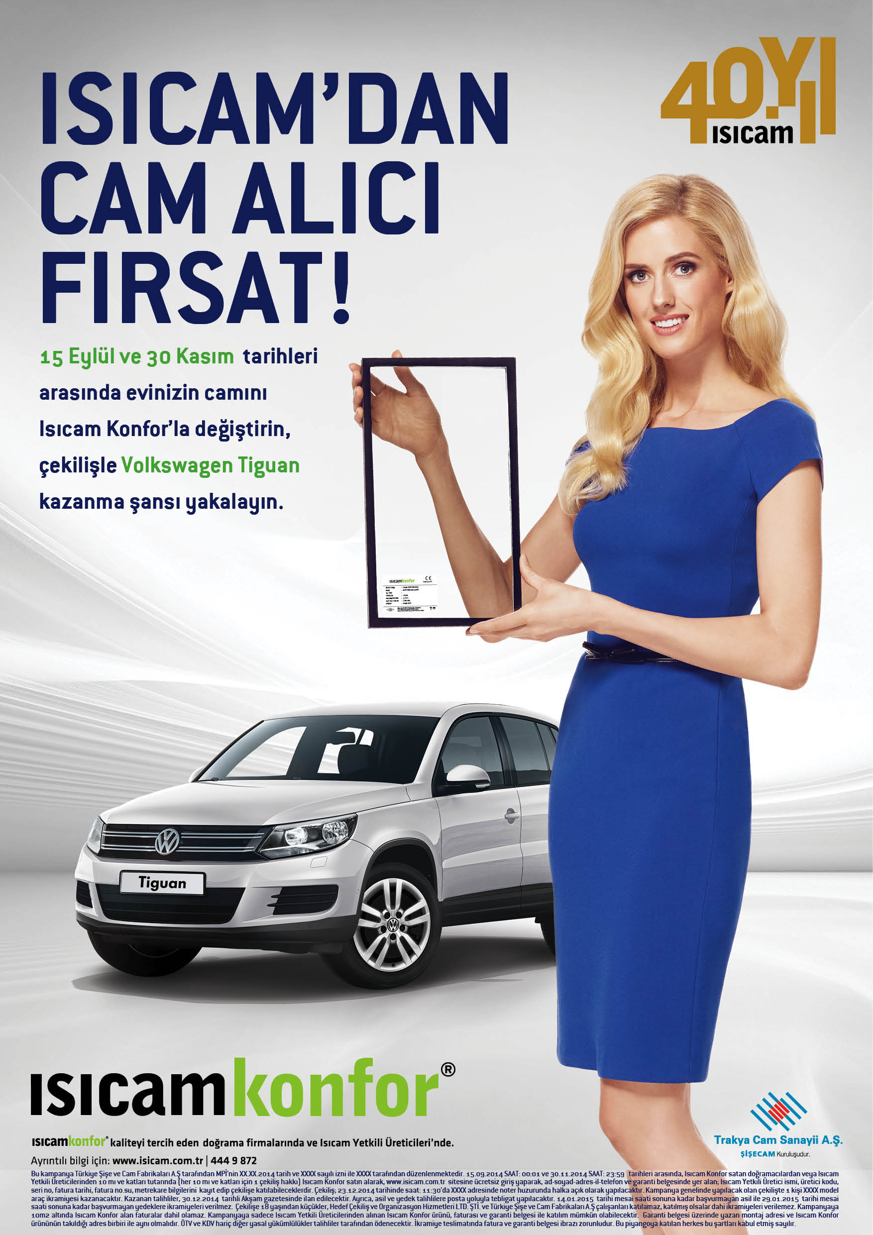 15 Eylül-30 Kasım 2014 tarihleri arasında evinin camını Isıcam Konfor ile değiştirenlerin katılacağı kampanyada bir kişi Volkswagen Tiguan kazanma şansı yakalayacak.