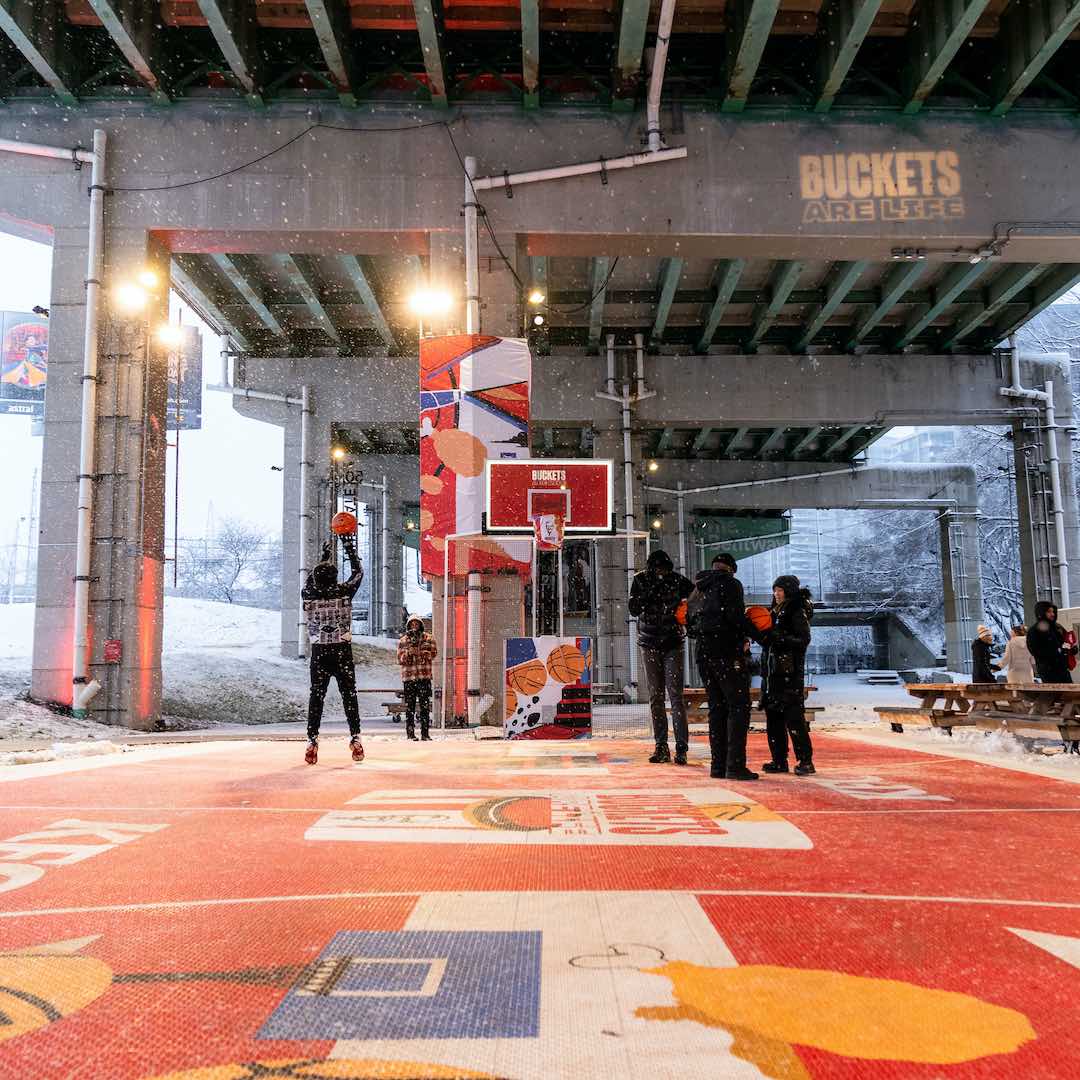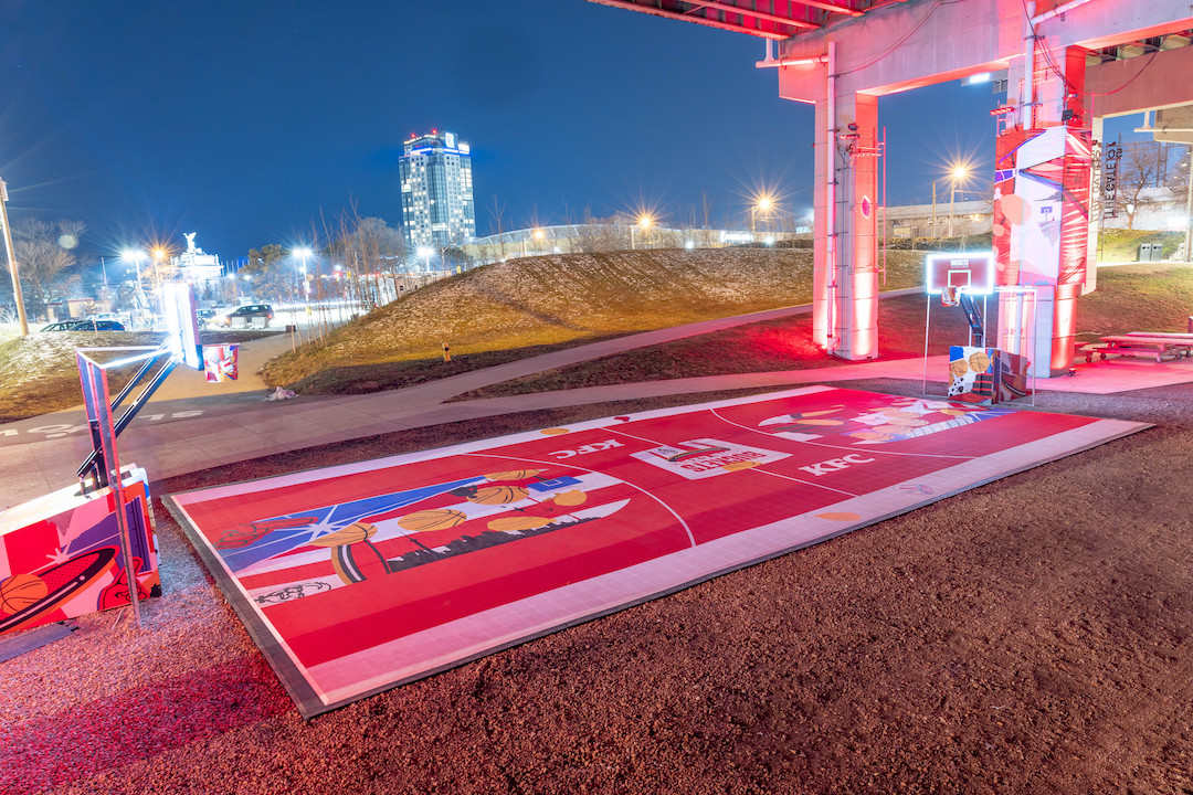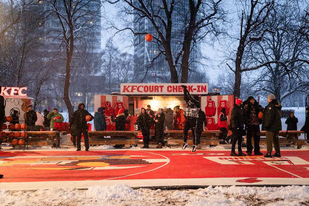 KFC, Kanada’da ikonik kovalarını basketbol potalarına dönüştürdüğü soğuk iklime uygun bir basketbol sahası oluşturdu