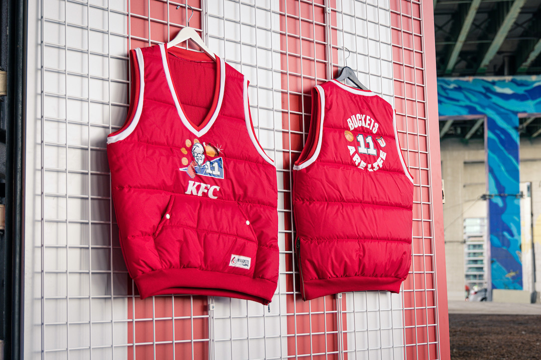 Marka, ellerin üşümesini önlemek için önceden ısıtılmış basketbol topları sunuyor. Ayrıca, KFC tavuğunda bulunan ikonik ve anlaşılması zor 11 çeşit baharata gönderme olarak 11 numaralı formalar dağıtılıyor.