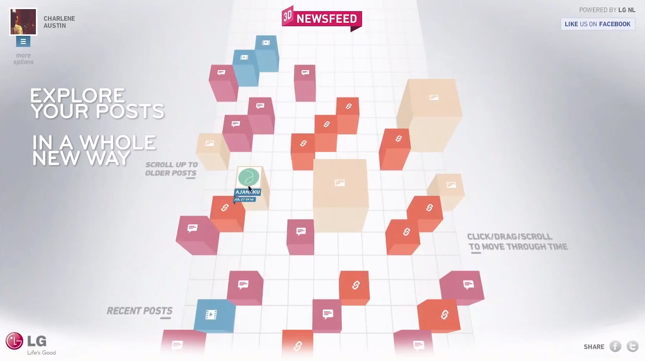 LG Electronics müşterilerine Facebook haber kaynağını üç boyutlu göstermelerine izin veren bir uygulamayla sosyal medyayı daha iyi hale getirmek istiyor.