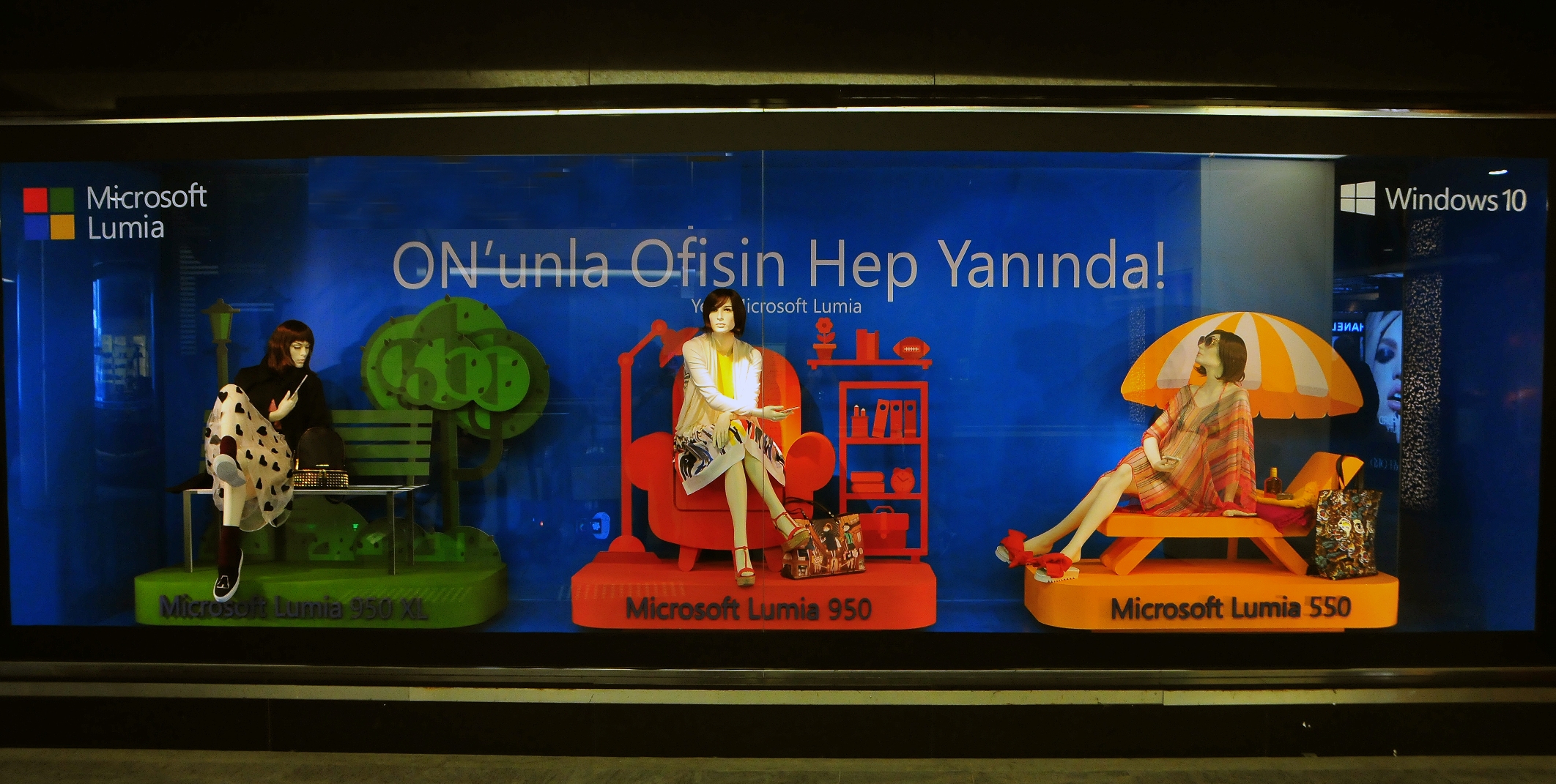 Microsoft ve Harvey Nichols görsel mağazacılık alanında bir ilke imza attılar. Harvey Nichols, İstanbul Kanyon AVM’deki mağaza vitrinlerini “On’unla ofisin hep yanında” konseptiyle yeniden tasarladı. Microsoft Lumia’nın yeni akıllı telefon modelleri 550, 950 ve 950 XL için özel olarak düzenlenen vitrinler, hem Harvey Nichols’ın İlkbahar-Yaz 2016 koleksiyonu hakkında ipuçları verirken, hem de Microsoft Lumia telefonlarını bu sezonun önemli bir aksesuarı olarak sergiliyor.