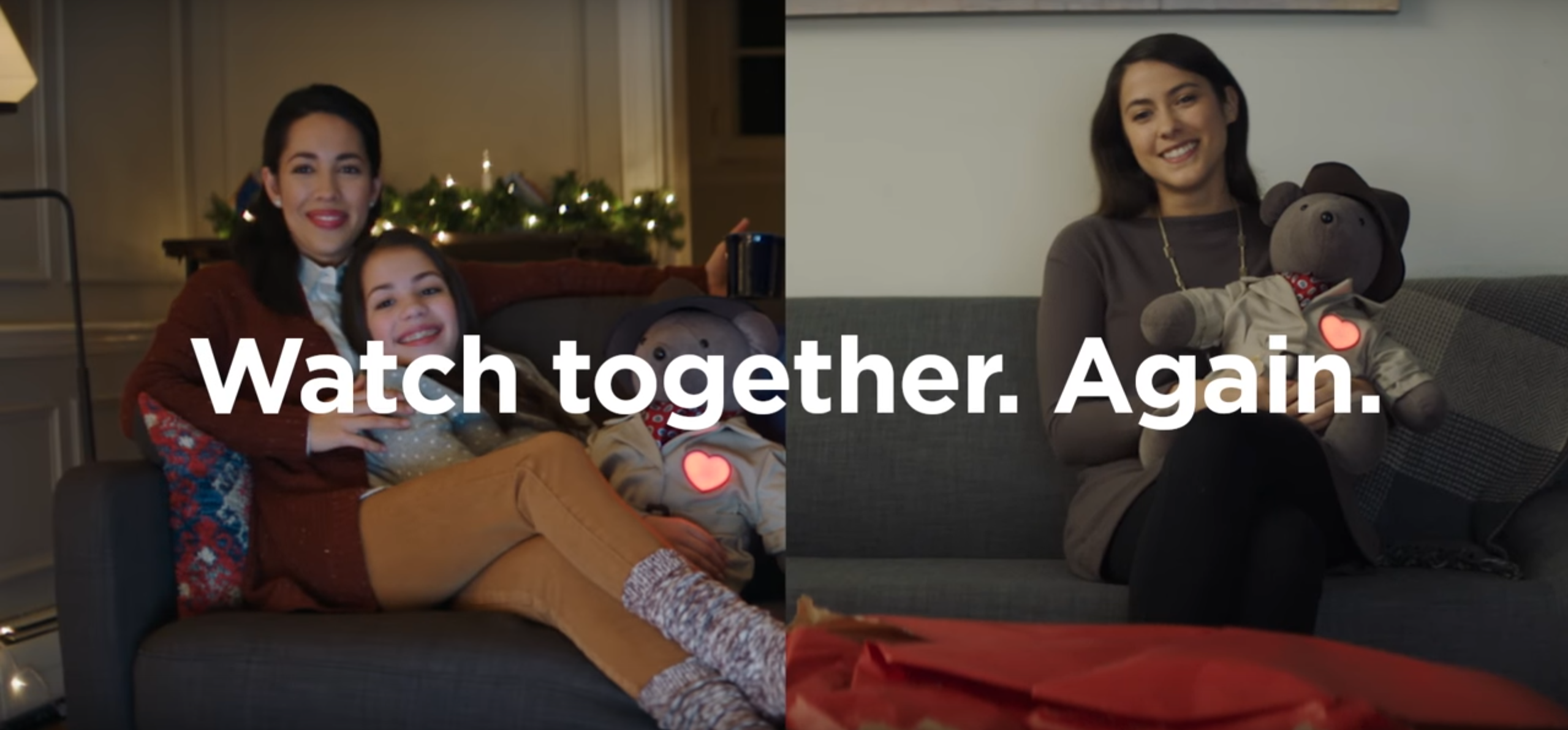 Reklam filminde kadın, kız kardeşine Mr. Bear’ı gönderiyor ve kız kardeşinden bu oyuncağa sarılmasını istiyor. Oyuncağın kırmızı kalbinde ışık yanınca iki kardeş birbirlerinden uzakta da olsa bağlı olduklarını hissediyorlar. Reklamın sonundaysa iki kız kardeş küçükken Full House’u izledikleri gibi bu sefer Fuller House’u izliyorlar.