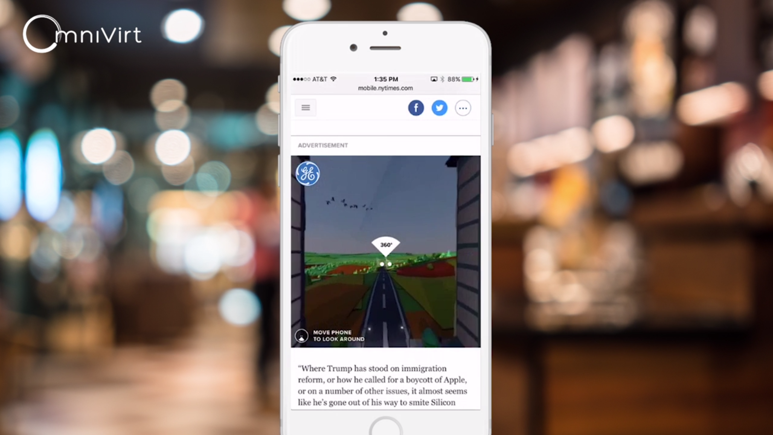 Gazetenin yapım şirketi TBrand Studio, OmniVert teknolojisini de kullanarak yarattığı bu etkileşimli video, General Electric ortaklığındaki sponsorlu içeriğin bir parçası.