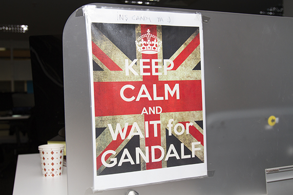 Kliksa’nın kalbini oluşturan -2’nci katın merkezinde ekipler sıra halinde masalara dizilmiş vaziyette, herkesin önünde dizüstü bilgisayar bazılarının önünde birkaç ekran bulunuyor. Kot farkından oldukça aydınlık olan teknik ekibin bulunduğu bölümde, toplantılar farklı odalarda gerçekleştirileceği için oldukça faydalı olarak görülen bu hamle ne yazık ki ofis masalarında detay eksiklerine sebebiye veriyor. Fakat bilişim ve pazarlama sektöründe dirsek çürüten herkes bilir ki, bu alanlarda çalışanlar masalarını “komik caps”ler, “duvar yazıları” ya da aksesuarlarla donatır. Burada da formül şaşmıyor ve peşi “İnş cnm yaa” ve “keep calm and…” print-out’ları bizi karşılıyor.