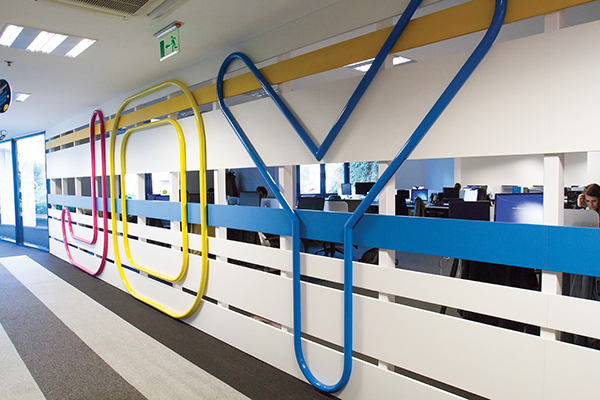 Binaya girer girmez Kliksa’nın renkleri olarak adlandırabileceğimiz mavi ve sarı tonların ağırlıklı olduğunu görüyoruz. Elbette bunun yanında daha “cıvıl cıvıl” renkler turuncu ve neon pembesi de mevcut. Girişte şirketin değerleri yer alırken, iş yoğunluğunun büyük olduğu bölüme giriş “Enter” tuşuyla yapılıyor. Şirket değerlerini bize ofis ziyaretinde kapılarını açan ve eşlik eden Kliksa’nın Genel Müdürü Nevgül Bilsel Safkan, “İç mimar Kerem Çamaş’la çalıştık. Bizi anlayarak dizayn etti burayı ve biz ona değerlerimizi anlattık. Dört değerimiz neşe, iyimserlik, sadelik ve inovasyon. Bu temel değerler üzerinden çalışarak onu gerçekleştirdik” sözleriyle anlatıyor. Safkan’ın kendisi de hem neşesi hem gülümsemesi hem de ofis içerisinde ekip arkadaşlarıyla yaptığı görüşmelerden şirket değerlerini bünyesinde barındırdığını ziyaretimiz boyunca kanıtlıyor adeta.
