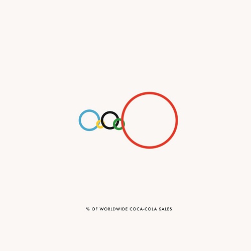 Gustavo Sousa isimli sanatçı 5 farklı kıtayı temsil eden olimpik halkaları kullanarak kıtalarla ilgili yaratıcı bir infografik çalışması hazırladı. Hangi kıtada Facebook kullanıcılarının daha fazla olduğunu, obezitenin en fazla olduğu kıtayı, Coca Cola’nın satışlarının hangı kıtada daha yüksek olduğunu ve daha birçok farklı bilgiyi halkaları kullanan yaratıcı infografikler sayesinde öğrenmek mümkün.
