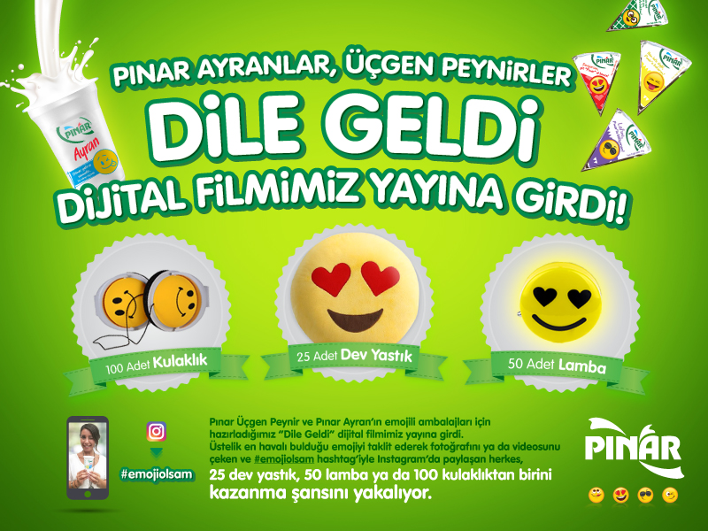 Marka, Pınar Üçgen Peynir ve Pınar Ayran ambalajlarında neşeli emojileri ve beraberinde yer alan eğlenceli mesajları paylaşmaya başladı. Pınar aynı zamanda #emojiolsam hashtag’i ile Instagram’dan bir yarışma da başlattı.
