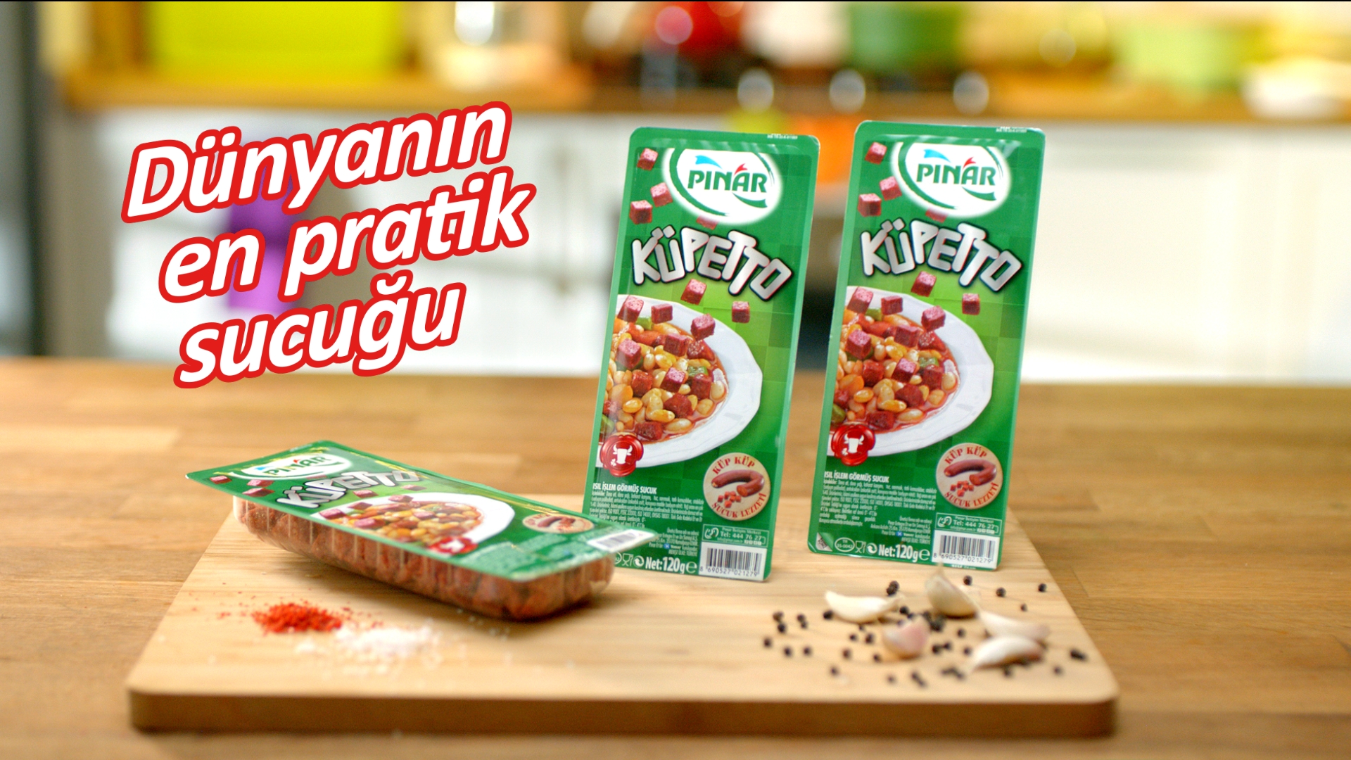 Reklam filminde, sucuklu kuru fasulye yapmak için mutfağa giren evin babası tarifte yazan “önceden küp küp doğranmış” sucuk ifadesini görünce panik oluyor. Evin annesinin önceden küp küp doğranmış Pınar Küpetto’yu uzatmasıyla rahatlayarak, tarifi uygulamaya devam ediyor.