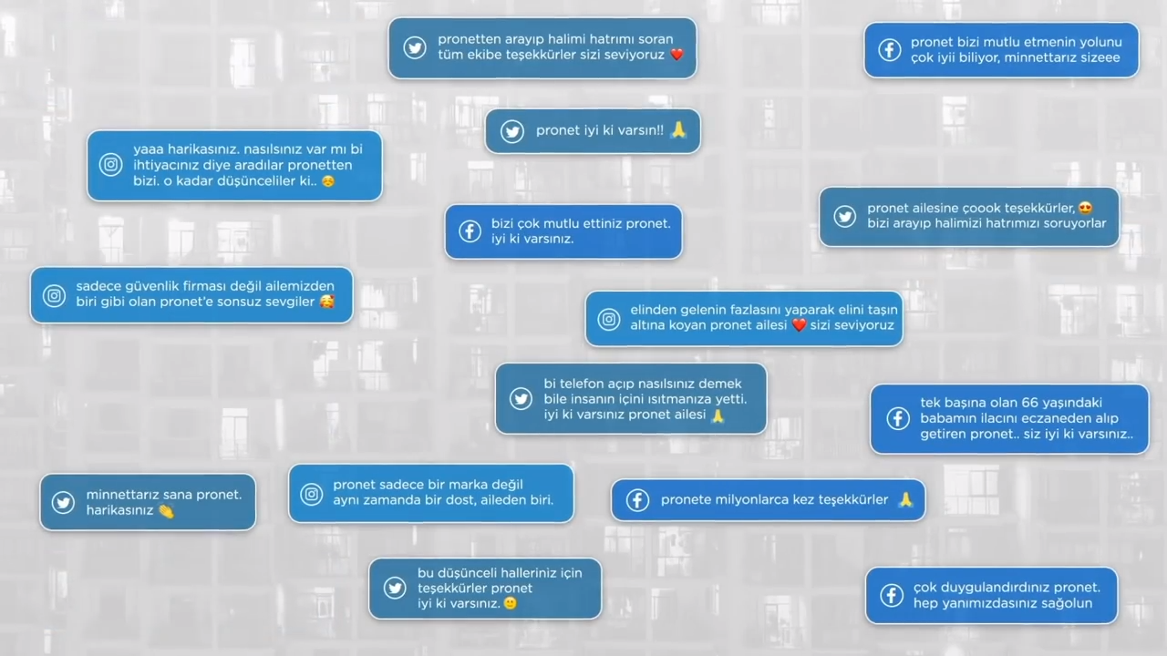 Kullanıcılarıyla kurduğu bu yakın etkileşimi yeni bir reklam filmiyle aktaran Pronet, Pronet Kahramanları’nın bu süreçteki gerçek öyküleriyle birlikte, aranan kullanıcılardan gelen geri bildirimleri etkileyici bir dille anlatıyor. Kullanıcılarının sorunlarını dinleyen, tüm ihtiyaçları için yardımcı olmaya çalışan Pronet Kahramanları, yaşadığımız bu zor günlerde “Sizler iyi ki varsınız” diyerek göreve her daim hazır olduklarını gösteriyor.
