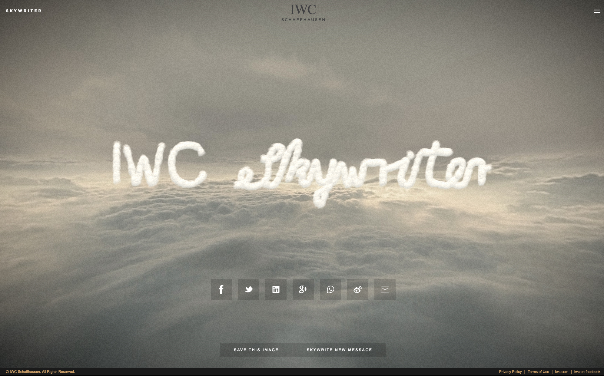 IWC Schaffhausen, internet kullanıcılarını sanal gökyüzünde dijital mesajlar yazmaya ve bu mesajı üçüncü kişilerle paylaşmaya davet eden SKYWRITER isimli yeni bir dijital kampanya başlattı.