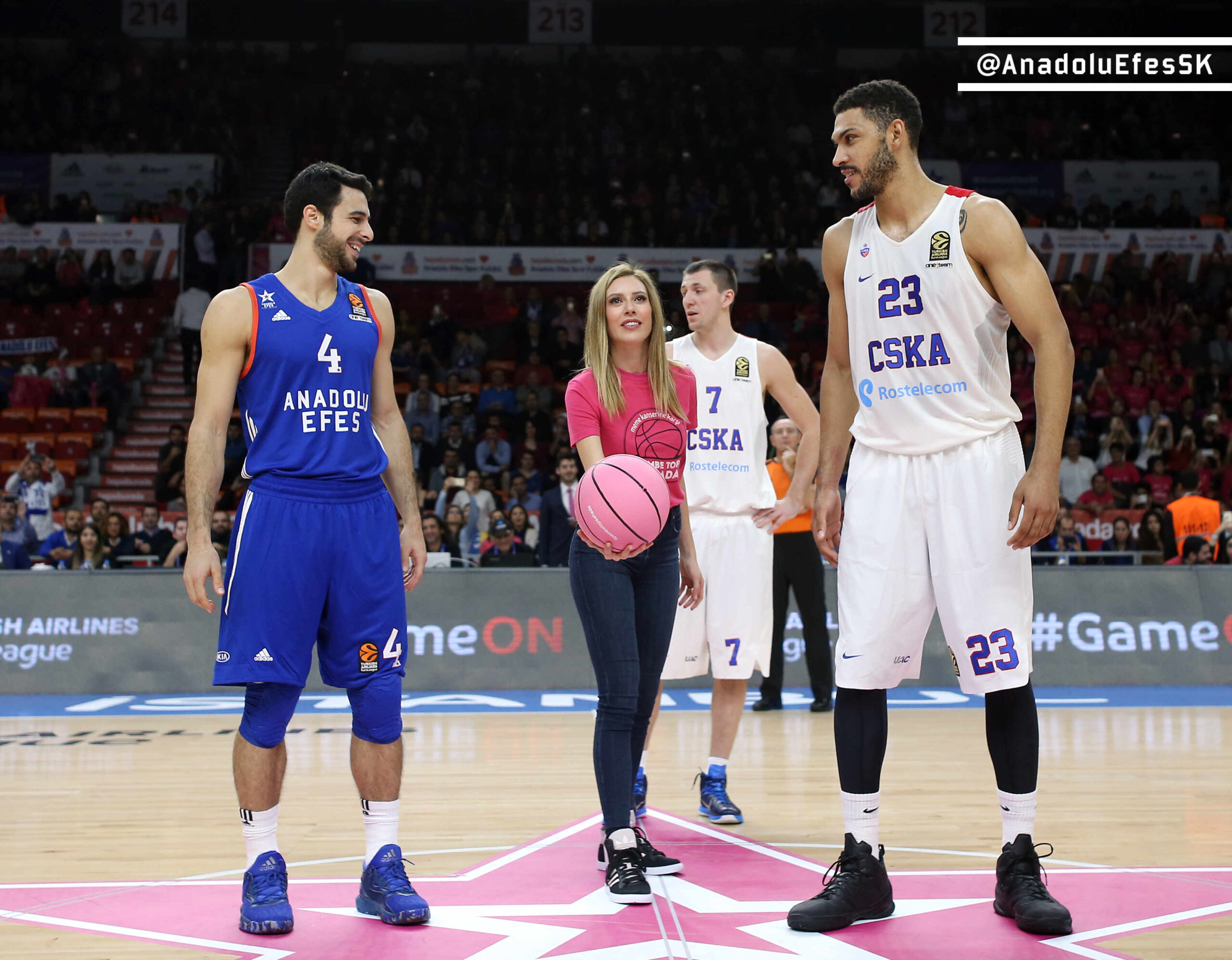 Anadolu Efes ve CSKA Moskova arasında oynanan karşılaşmada hava atışı, projeye gönüllü olarak destek veren oyuncu Sinem Kobal tarafından pembe top ile yapıldı.
