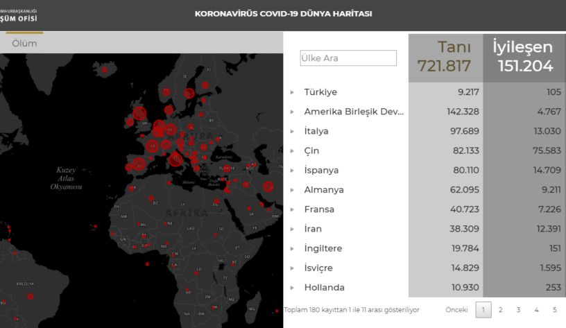 Cumhurbaşkanlığı COVID-19 canlı takip haritası hazırladı