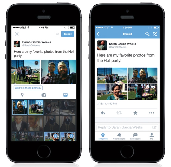 Twitter’daki fotoğraf etiketleme özelliği de Facebook’unkiyle benzerlik gösteriyor. Yüklediğiniz fotoğrafın (tek seferde dört tane fotoğraf yükleyebiliyorsunuz) her birinde 10 kişiye kadar etiketleme yapabiliyorsunuz. Eğer siz, biri tarafından etiketlenirseniz bununla ilgili bir bildirim alıyorsunuz.