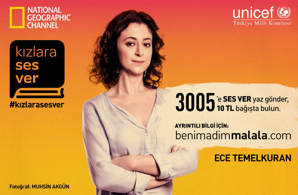 National Geographic Channel ve UNICEF Türkiye Milli Komitesi’nin hayata geçirdiği, kız çocuklarının okutulması ve okula devam edebilmesi konusunda davranış değişikliği ve kamuoyunda farkındalık yaratmayı amaçlayan “Kızlara Ses Ver” kampanyasına Buğra Gülsoy, Ece Temelkuran, Harun Tekin, Sedef Avcı ve Şebnem Bozoklu gibi birçok ünlü isim destek veriyor. Dünyada kız çocuklarının eğitimi konusunda bir ikon haline gelmiş, Nobel Barış Ödüllü Malala’nın başardıklarını konu alan belgesel “Benim Adım Malala”dan ilham alarak gerçekleştirilen farkındalık kampanyasının fotoğraf çekimlerinde Muhsin Akgün ve seslendirmede oyuncu Barış Falay da katkıda bulunuyor.