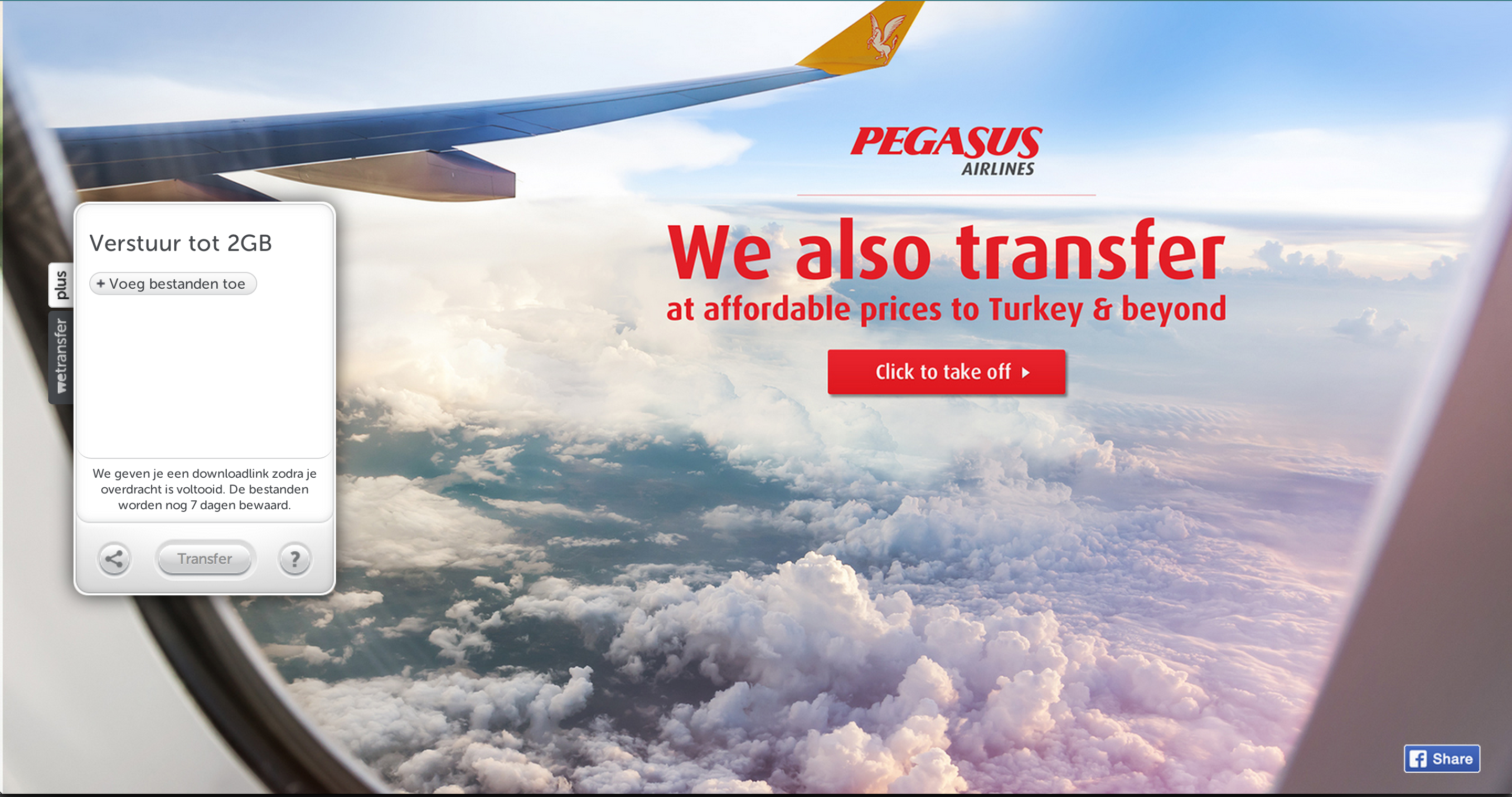 Isobar’ın yaratıcı fikri ve uygulaması, Vizeum’un dijital medya planlamasıyla, Pegasus Airlines’ın Avrupa destinasyonlarına yönelik WeTransfer mecra özel çalışması başarılı sonuçlar getiriyor.